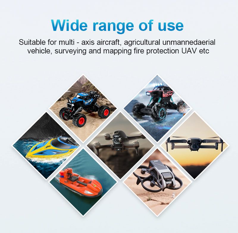 आमचीलिपो बॅटरी 6 एसविविध अनुप्रयोगांसाठी अष्टपैलू आणि आदर्श आहे, यासह: