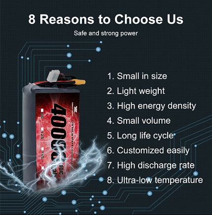 लिथियम पॉलिमर (लिपो) बॅटरी त्यांच्या उच्च उर्जा घनता आणि डिस्चार्ज दरामुळे ड्रोन अनुप्रयोगांसाठी बराच काळ निवड आहे. तथापि, हेवी-ड्यूटी ड्रोनसाठी, प्रगत लिपो फॉर्म्युलेशन किंवा वैकल्पिक केमिस्ट्रीज उत्कृष्ट कामगिरी देऊ शकतात.