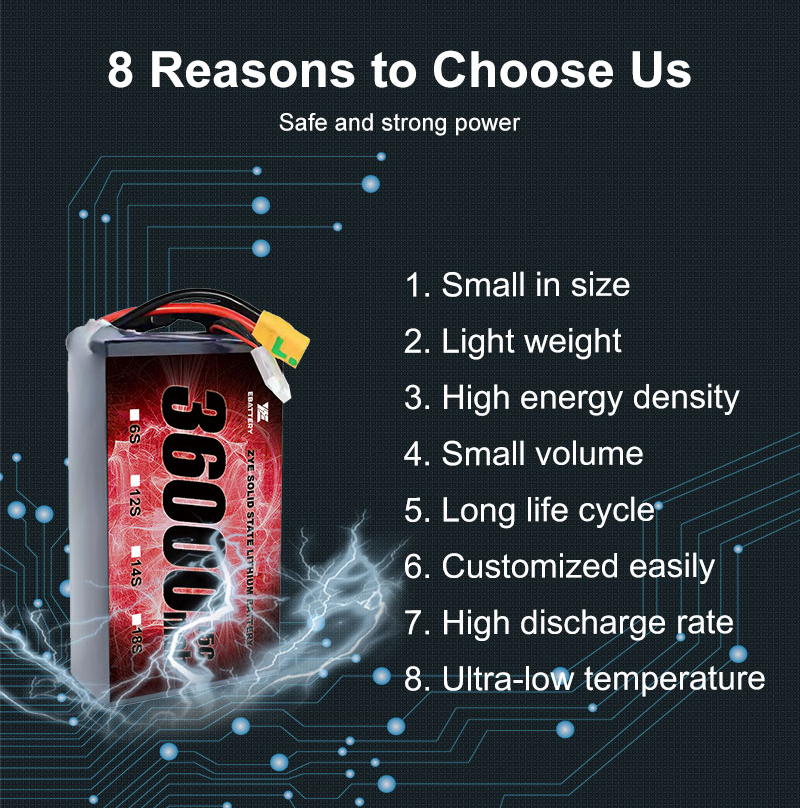 आपण आपल्या आरसी कारच्या कामगिरीला चालना देण्याचा विचार करीत आहात?डोळे, प्रगत बॅटरीचे एक अग्रगण्य निर्माता, उच्च-गुणवत्तेची ऑफर देतेआरसी कार बॅटरीअतुलनीय शक्ती आणि सहनशक्ती वितरित करण्यासाठी डिझाइन केलेले. आमच्या प्रख्यात ली एचव्ही 36000 एमएएच 12 एस सॉलिड स्टेट बॅटरीप्रमाणेच, आमच्या बॅटरीने कठोर प्रमाणपत्रे दिली आहेत आणि अत्यंत परिस्थितीतही अपवादात्मक कामगिरी केली आहे. झे सह, आपण फक्त बॅटरी खरेदी करत नाही; आपण विश्वसनीयता आणि कामगिरीमध्ये गुंतवणूक करीत आहात. आम्ही जगभरातील ग्राहकांचा विश्वास मिळवून आमच्या तंत्रज्ञानाचे परिपूर्ण करण्यासाठी एक दशकापेक्षा जास्त काळ घालवला आहे. जेव्हा आपण झेई निवडता तेव्हा आपण उत्कृष्ट गुणवत्ता आणि सेवा वितरित करण्यासाठी समर्पित भागीदार निवडता.
