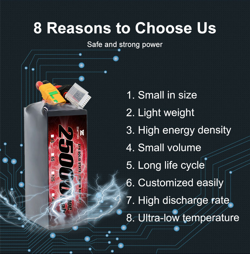 झे येथे, आम्ही फक्त बॅटरी बांधत नाही; आम्ही विश्वास वाढवित आहोत. लिथियम बॅटरी उद्योगातील दशकांहून अधिक अनुभव घेतल्यामुळे आम्ही अपेक्षेपेक्षा जास्त उत्पादने वितरीत करण्यासाठी आमच्या कौशल्याचा सन्मान केला आहे. असे एक उत्पादन आमचे आहेउच्च उर्जा घनता 22 एएच 20 एएच 22000 एमएएच 10 सी 20 सी सॉलिड स्टेट ली-आयन बॅटरी पॅक लांब श्रेणी ड्रोनसाठी, जास्तीत जास्त कार्यक्षमता आणि अनुप्रयोगांची मागणी करण्यात सहनशक्तीसाठी डिझाइन केलेले.